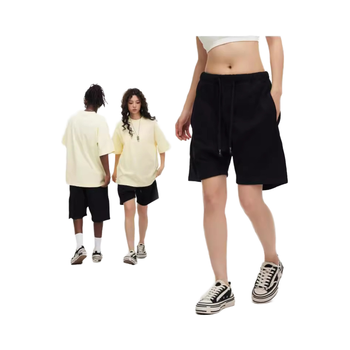 Pantalones cortos informales de verano de algodón de 450g con logotipo personalizado para hombres y mujeres, pantalones cortos holgados con cordón medio de Color sólido que absorben el sudor para estudiantes