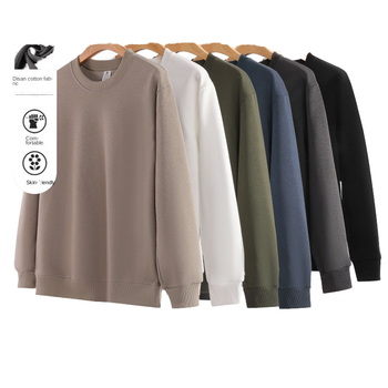 OEM Custom Logo Cotton Neck Sweatshirt for Men and Women Long Sleeve Casual Solid Color Base T-Shirt with Loose Shoulder