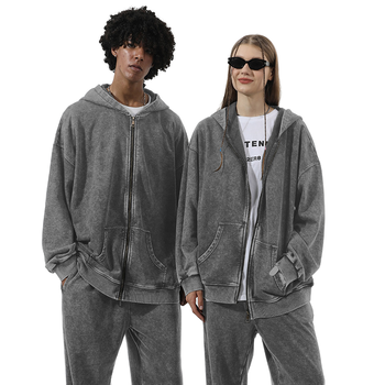 Custom Logo OEM Design Brand American Retro Washed Terry Cardigan 350g Old Zipper Hooded Vest with 100% Cotton Solid Pattern