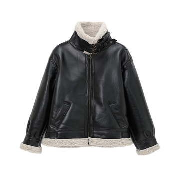 Tùy chỉnh Thương hiệu Mới Mùa Đông Nam Nữ Tích hợp áo khoác da cừu đứng cổ áo cao phong cách đường phố da lộn xe máy Áo khoác dây kéo